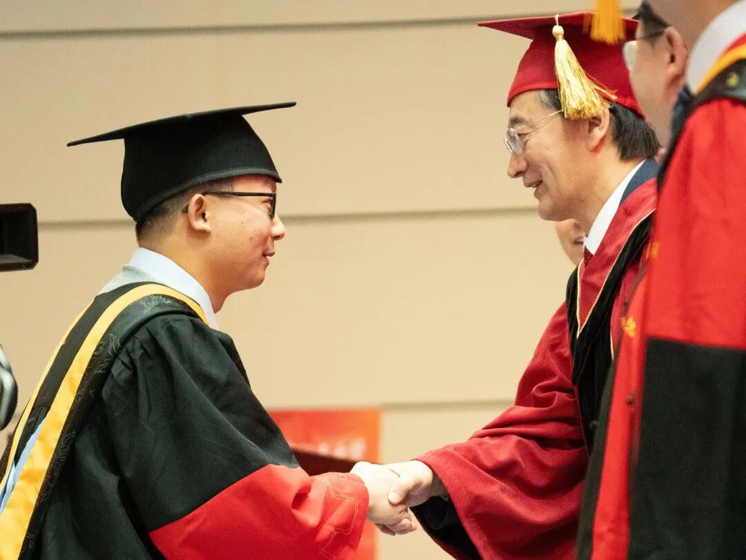 随后,毕业生学位授予仪式正式开始。与会领导和嘉宾为毕业生拨穗正冠,送上最为真挚的祝福并合影留念。