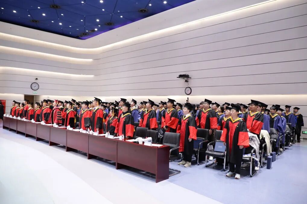 毕业典礼最后全体师生起立,合唱校歌《仰望星空》,悠扬的歌声中洋溢着青春的热忱与不舍,流露着对未来的期盼与壮志。