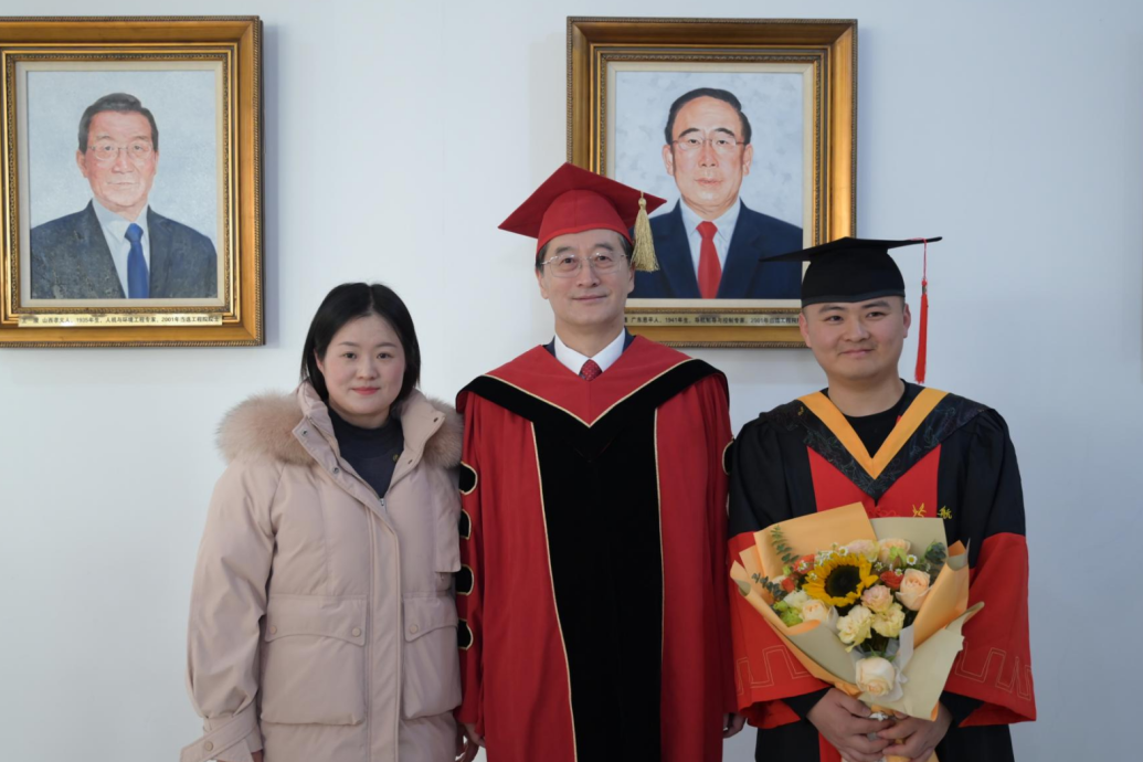 为了让1月份毕业的同学们不留遗憾,校长王云鹏院士专程来到典礼现场,既为同学们送行,也给予同学们勉励。校长向全体毕业生深情寄语,提出了三点希望:“科学没有国界,但科学家有祖国”,希望同学们始终心系国家,在科研中瞄准国家亟需,在岗位上坚守强国使命;“真理无尽,探索不息”,希望同学们保持求知若渴的态度,敢于挑战权威,勇于开拓未知,努力成为技术创新和社会进步的引领者;“天赋可以赢得比赛,但团队合作才能赢得冠军”,希望同学们继承北航优良传统,在强劲“中国心”的光荣使命中,汇聚众力,合举万钧,征服事业高峰。他祝愿大家前程似锦,捷报频传,欢迎常回家看看。